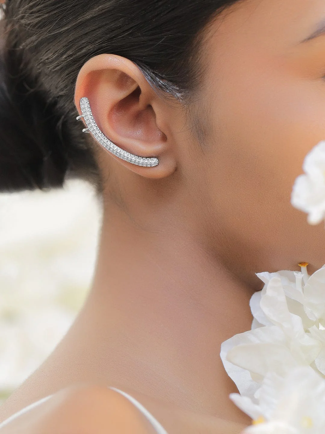 Rhodium-Plated Stainless Steel Tarnish-Free Waterproof Cubic Zirconia Sleek Ear Cuff – – 1 Piece Pack